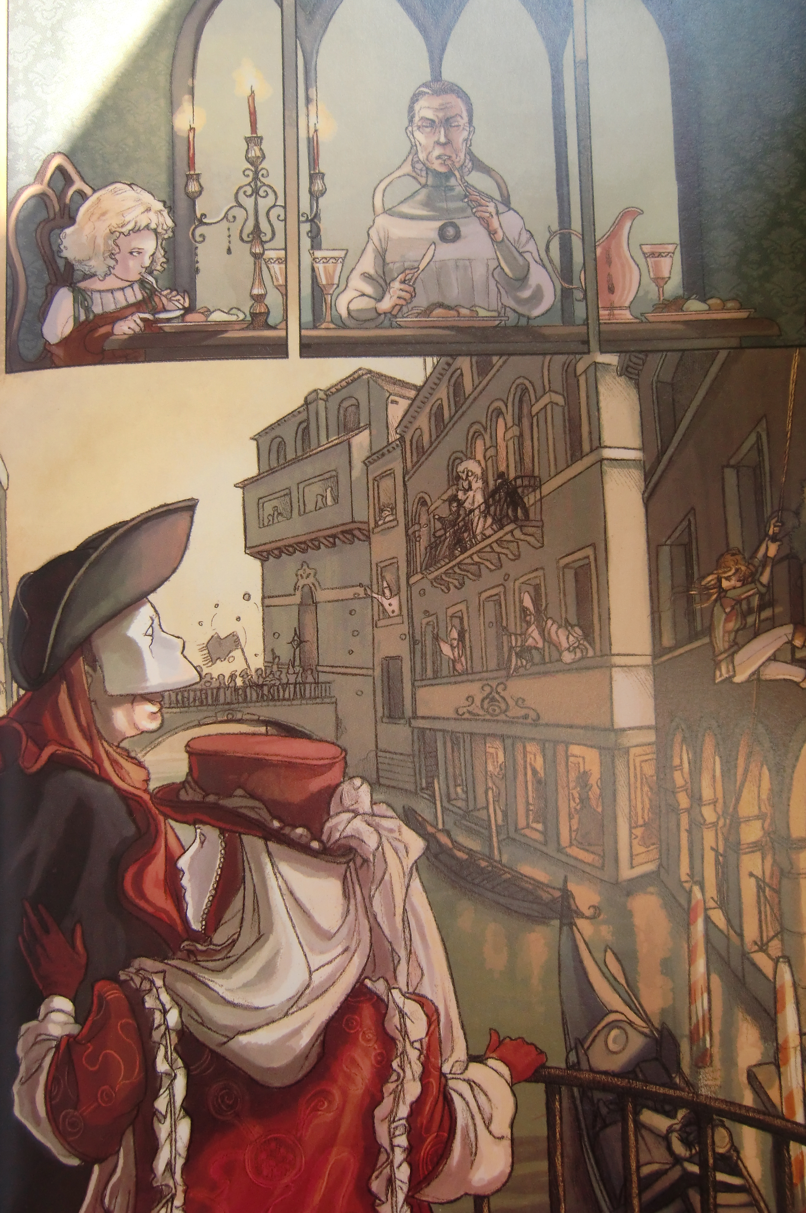 L’intrigue se déroule à Venise, pendant le carnaval. Les illustrations sont très belles. L’histoire commence assez bien mais stagne un peu ensuite. La fin est confuse (mais peut-être est-ce moi qui ai raté quelque chose), dommage. Je lis très peu de BD et celle-là m’a moyennement convaincue. J’espère que les prochains tomes de la série seront un peu plus captivants.