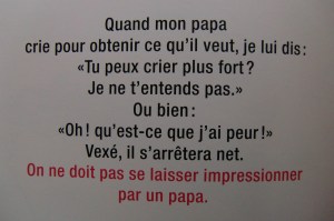 Un petit livre très drôle sur l’éducation. Les rôles y sont inversés, cette fois c’est aux enfants d’élever leurs parents. Un très bon moyen de leur apprendre avec humour la nécessité de poser des règles. A moins que ce ne soient les parents qui soient visés…