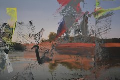 Je suis assez hermétique à l’art abstrait, autant vous dire donc que j’ai près d’un siècle de retard côté peinture. Toutefois, je fais un effort de temps en temps pour améliorer ma piètre culture en matière d’art contemporain. Grand bien m’en a pris ! J’ai beaucoup aimé cette exposition qui comprend essentiellement de la peinture mais aussi quelques installations un brin obscures (un miroir, des vitres qu’on peut voir sur la photo ci-dessus, un pièce métallique…). Le travail de reproduction photographique est très impressionnant par sa minutie et la qualité de l’exécution : de loin impossible de deviner qu’il ne s’agit pas d’une photo. Cependant, plus que les simples reproductions, j’ai préféré le travail sur le flou et surtout les oeuvres abstraites réalisée par dessus une toile figurative. Un mélange de techniques qui m’a particulièrement séduite. Une très belle exposition.