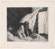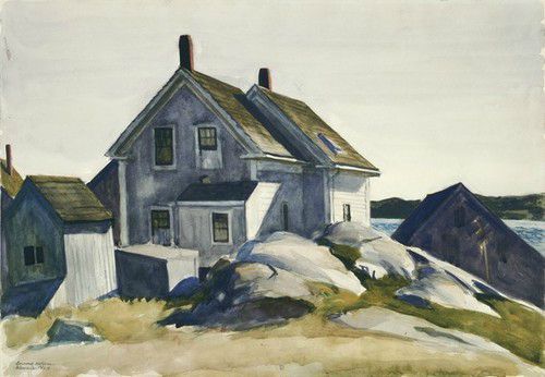 Je ne connaissais pas du tout le travail d’Hopper (mis à part une ou deux toiles aperçues à l’occasion), je me suis donc rendue à cette exposition par curiosité. J’ai beaucoup aimé la première partie. Certaines gravures sont très belles et assez originales. Il y a aussi des encres que j’ai particulièrement aimées, avec un dessin épuré et des couleurs des plus réussies. Viennent ensuite les aquarelles. Sans doute ce que j’ai préféré dans cette longue exposition. Elles ne sont pas très nombreuses mais je les ai trouvées pour la plupart absolument splendides (évidemment, je n’ai pas réussi à vous dégoter un visuel de celle que j’ai préféré…).