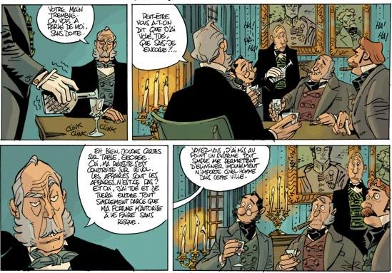 J’ai particulièrement apprécié celles où on homme infirme veut se venger de sa femme et de son amant, où un homme enquête sur un meurtre avant de découvrir qu’il en est lui-même le coupable, où des femmes montent un brillant stratagèmes pour cacher à leurs mari le crime de l’une d’entre elles ou encore celle où un homme insignifiant tue sans être inquiété avant de périr à son tour dans des conditions assez comiques. Il y a quelques trouvailles dans ces enquêtes élégantes et quelques jolies références aux classiques de l’énigme. On se délecte de ces histoires un rien macabre au cynisme irrésistible. A la fois un très bel objet et une excellente BD, un réel plaisir pour les yeux comme pour l’esprit !