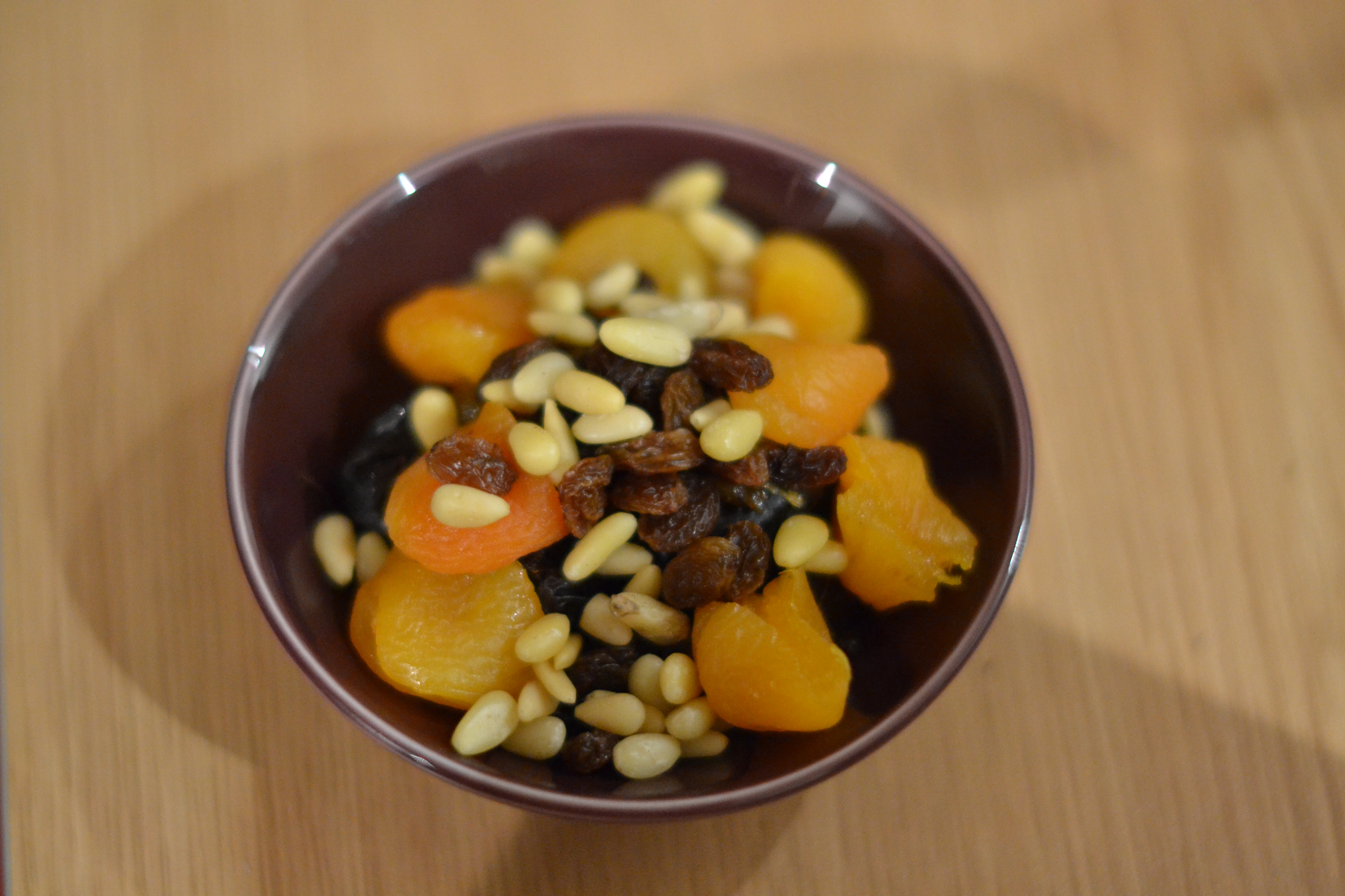 Faites-les dorer 2 à 3 minutes sur chaque face puis ajoutez l’oignon, les fruits secs et le 5 épices. Salez, poivrez et laissez cuire à couvert 15 à 20 minutes en retournant régulièrement.