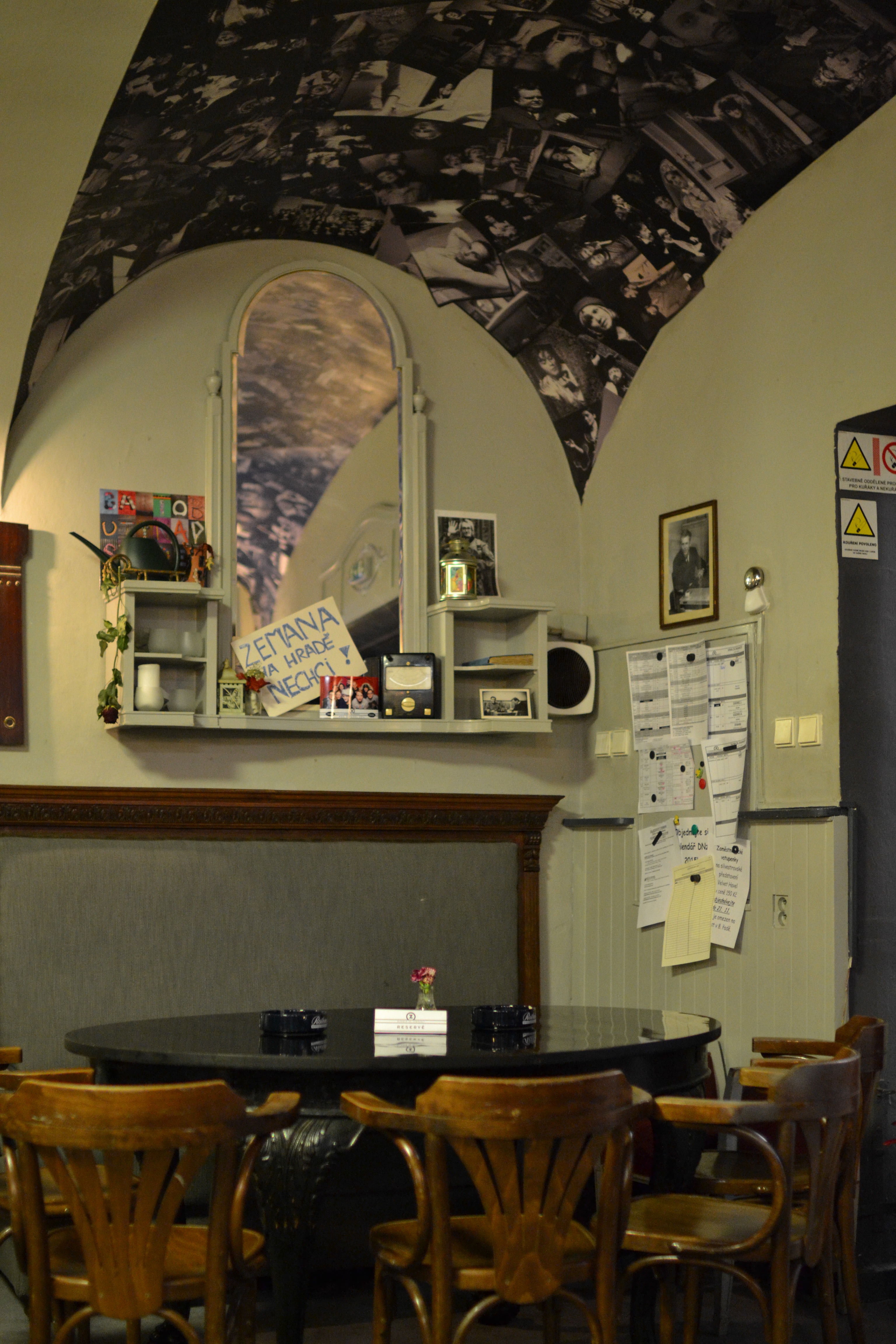 Après une sieste bien méritée, je suis ressortie en me disant que pour être sure de bien manger, j’allais suivre les conseil du guide que j’ai amené avec moi. Grave erreur. Le lieu était certes typique : une grande taverne voûtée, enfumée et bruyante où jouait un accordéoniste – mais le service était des plus expéditif, les portions bien chiches et surtout, c’était mauvais. Vraiment. La bière était infecte et la viande couverte de chantilly. Beurk ! En sortant, j’ai voulu me remonter le moral avec un Trdelnik. J’avais repéré une petite boulangerie qui en proposait, je m’y suis donc rendue. C’était froid et pas assez cuit, encore raté. Malgré tout, j’ai décidé de tenter une cave qui propose du jazz pour finir sur une touche positive. Ce n’était pas encore ouvert à mon arrivée, je me suis donc installée dans le bar qui la surplombe en attendant pour boire un cidre qui avait un goût intéressant de bière à la pomme. Je ne vous dirai pas comment était le concert, je n’y suis jamais arrivée. Des musiciens m’ont invitée à leur table et avant la fin de la soirée, j’avais parlé à à peu près tous les habitués, dans toutes les langues. Je sais maintenant qu’en tchèque, bière ne se dit pas pareil en fonction de si on en a bu plus ou moins de quatre. Une fin de soirée qui redonne sacrément le sourire en tout cas !