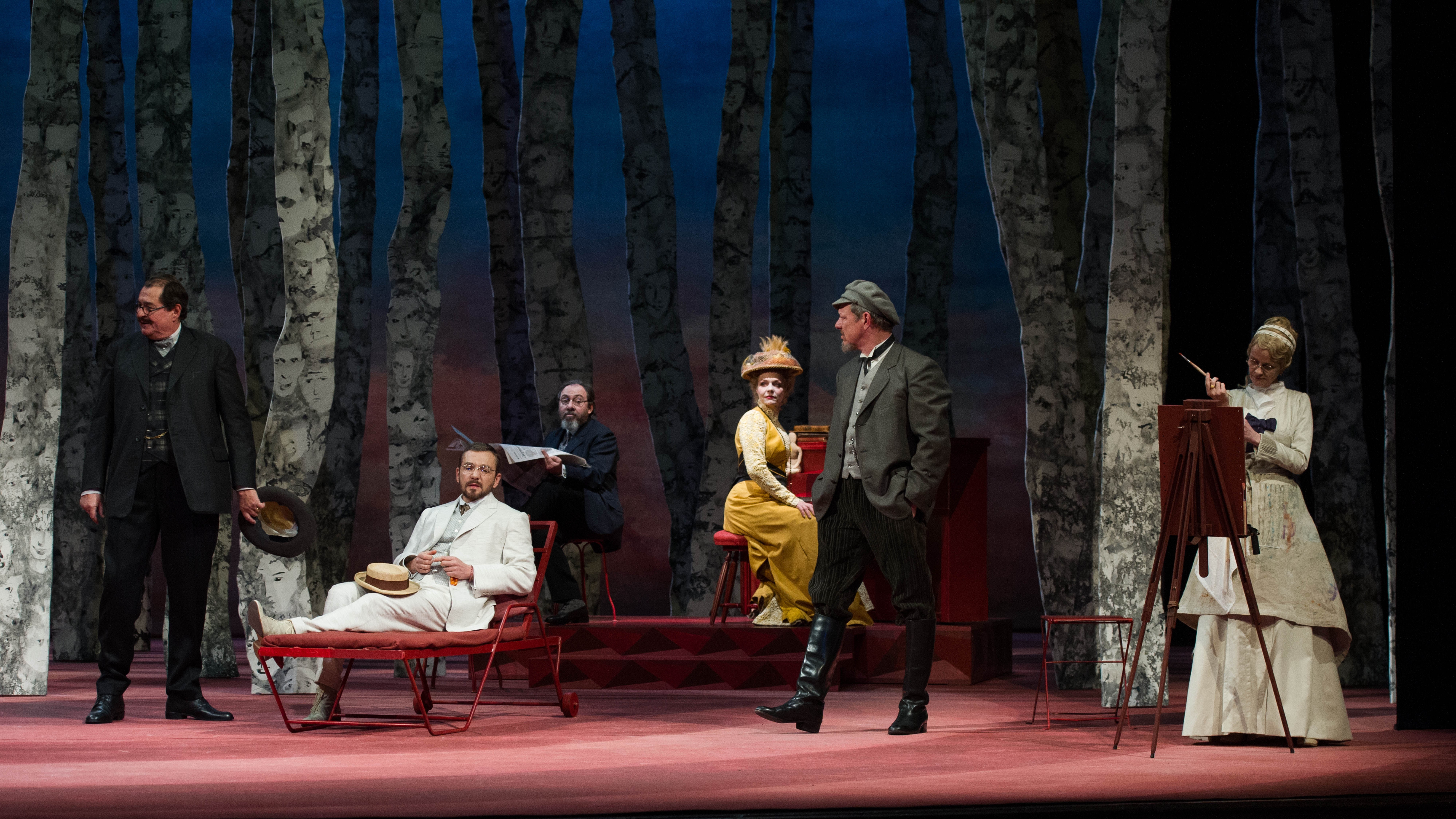 Rien que pour admirer le raffinement de la mise en scène et les décors, ça vaut le déplacement. En revanche, on peut trouver la pièce un peu lente. Il faut dire que le sujet ne se prête pas vraiment à l’action. Il porte plutôt sur la vacuité des relations entre la nouvelle élite moscovite. Les discussions sont oiseuses et la fausseté des sentiments le dispute à l’ennui. Mais cette lenteur n’est en rien inutile et sert au mieux le propos. Les choses se mettent en place peu à peu et si parfois j’ai trouvé le temps un peu long, le dernier acte ne manque pas d’intensité (moi qui n’aime pas les engueulades, j’ai été servie) et le final m’a quelque peu sonnée. Sa violence le dispute à sa modernité. J’ai trouvé que ce texte n’avait pas pris une ride et un siècle après son écriture restait parfaitement d’actualité. En effet, les propos oiseux ne sont pas sans rappeler les réflexions de certains parisiens en villégiature à la campagne.