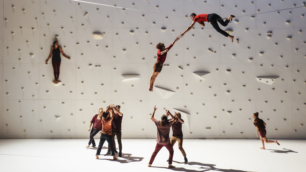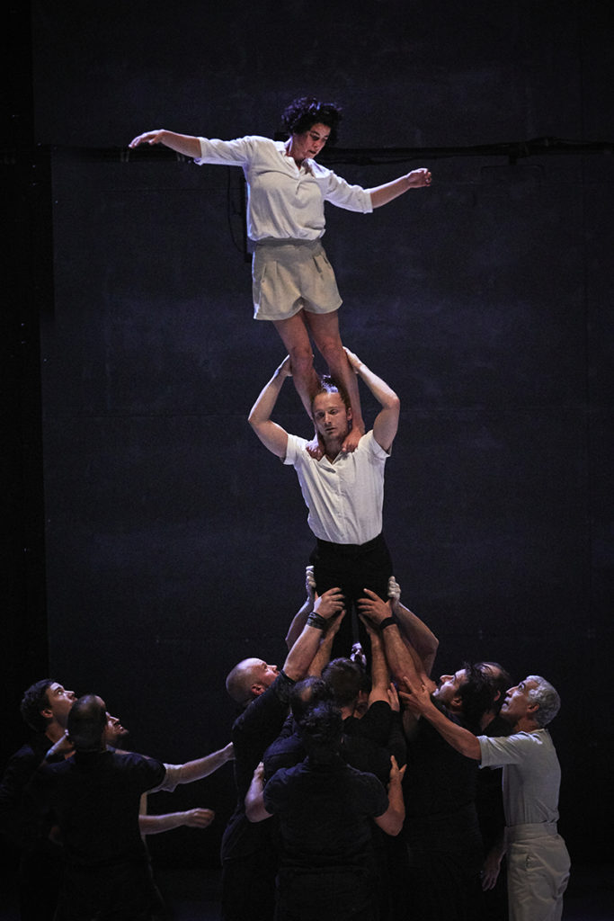 On retrouve Rachid Ouramdane avec un spectacle qui n’est pas sans rappeler celui de XY à qui il emprunte la technique de tour humaine – et au passage quelques acrobates. Ici viennent encore se mêler d’autres disciplines comme la skyline, avec un des maîtres en la matière, la danse ou encore l’escalade. Un spectacle qui brouille la frontière entre les disciplines avec beaucoup d’intelligence et de finesse. Ca parle des corps et de leurs limites, des blessures, des rêves. Il y a une utilisation très intéressante de l’image et du son. Ici on est moins dans la performance pure que chez XY mais les deux spectacles entrent en résonance. Il y a un gros travail sur le déséquilibre, c’est toujours légèrement trébuchant et si léger et poétique à la fois. Cette manière de mettre en avant la fragilité derrière l’exploit technique est bouleversante. C’est beau à en pleurer, un très grand coup de cœur.