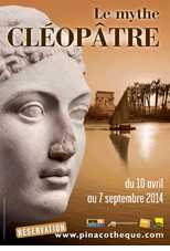 – Le mythe de Cléopâtre : Cléopâtre, une figure mythique de l’Egypte ancienne. Cette reine fut tour à tour la maîtresse de Jules César et Marc-Antoine. Ses amours et sa fin tragique fascinent et ont inspiré peintres, écrivains et cinéastes. Une exposition qui entre réalité et fantasme, décortique un mythe. Pinacothèque de Paris jusqu’au 07 septembre.