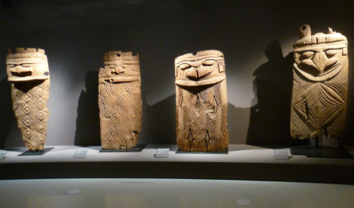 J’ai été un peu moins enthousiaste quant au contenu. La première partie contient énormément d’ornements de portes. Certains sont très spectaculaires mais cela a un côté un peu répétitif tout de même et j’aurais pour ma part souhaité voir des choses un peu plus variées. De même pour la suite où un grand nombre de haches ornementales sont présentées. Les objets sont dans l’ensemble intéressants mais chacun est présenté en grand nombre, ce qui peut avoir un côté lassant lorsqu’on n’est pas spécialiste. De plus, si les questions de la parole, de la famille ou de la culture de l’igname sont intéressantes, il me semble que ce n’est toutefois pas ce qu’il y a de plus crucial dans les relations franco-kanakes, avec notamment un passé colonial très lourd. Aujourd’hui encore, la question reste épineuse et j’ai trouvé que le sujet était très largement évité.