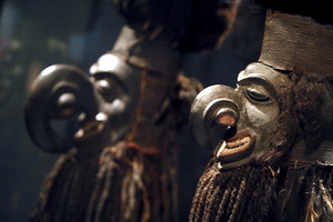 Il y a donc en quelque sorte un parcours principal, sur la culture kanake traditionnelle et un parcours secondaire, sur les aspects coloniaux. Bon, pourquoi pas me direz-vous ? Moui, sauf que ce n’est pas très clair et que ça donne la très nette impression qu’on planque ce qui dérange dans un coin. Ce qui est dommage car j’ai trouvé cette partie-là très bien traitée et franchement passionnante. Je n’en dirais pas tant du reste de l’exposition… Il y a certes des choses intéressantes, sur la place de la parole notamment, ou l’usage de masques, mais j’ai trouvé que ça manquait cruellement d’objets du quotidien. Nous avons vu moultes appliques de portes de cases ou haches ostentatoires mais très peu de choses pouvant nous aider à nous représenter de manière concrète le mode de vie kanak. Un peu plus de diversité dans le choix des œuvres exposées aurait peut-être permis de se faire une meilleure idée de la manière dont vivent les gens. Pas grand chose sur les costumes par exemple, ou sur la nourriture (en de l’igname, sujet très développé, il est vrai).