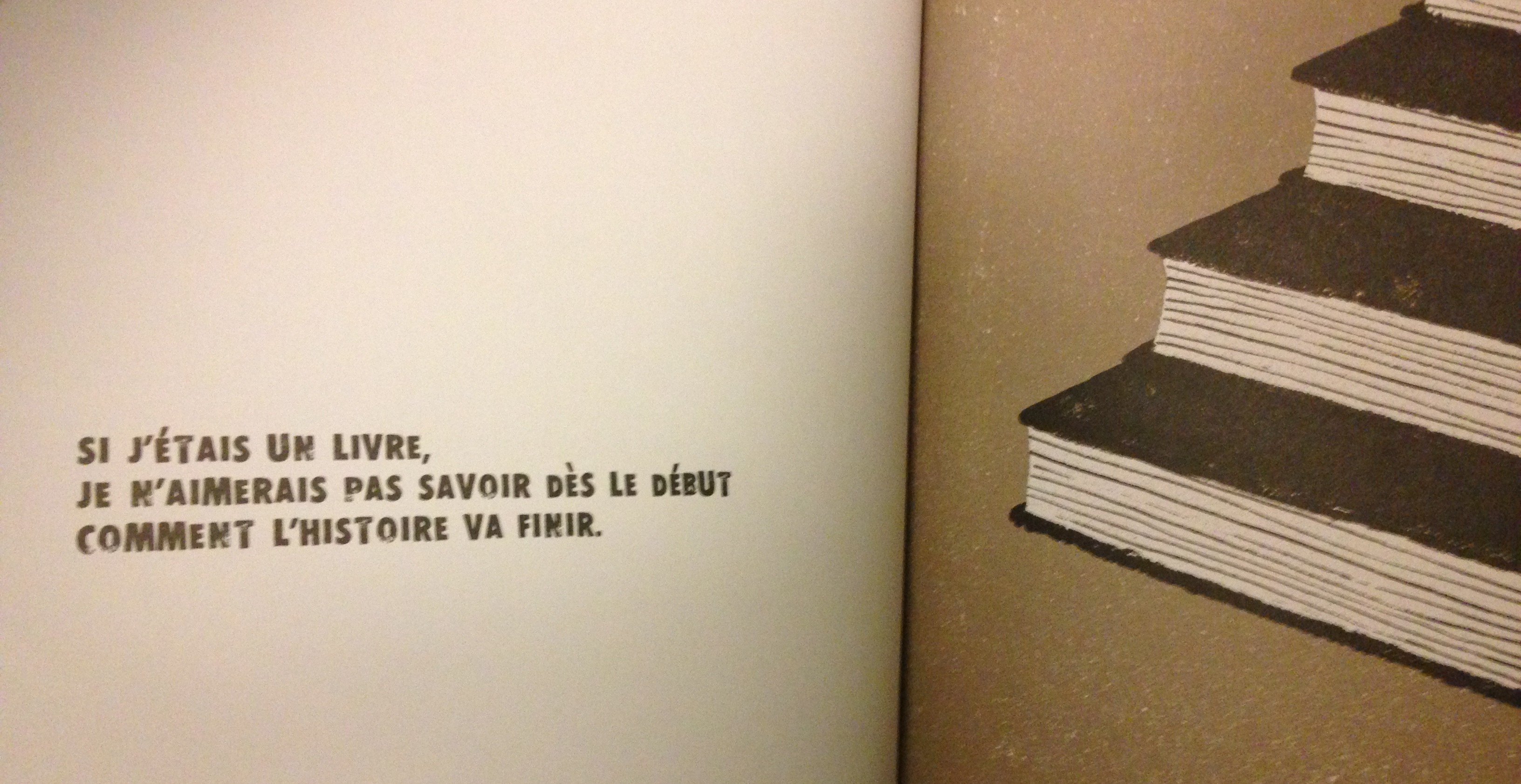 Je suis tombée sur cet album en traînant au rayon jeunesse d’une de mes librairies favorites et je suis totalement tombée sous le charme. J’ai toujours aimé les livres qui traitent des livres (justement) ou de la lecture. J’en ai d’ailleurs plusieurs dans ma bibliothèque. Celui-ci est un peu particulier puisqu’il nous propose, non sans humour, de nous mettre dans la peau d’un livre. Il vous donnera envie de vous faire tout petit pour vous glisser dans votre bibliothèque au milieu des ouvrages en attendant qu’un lecteur vienne vous feuilleter.