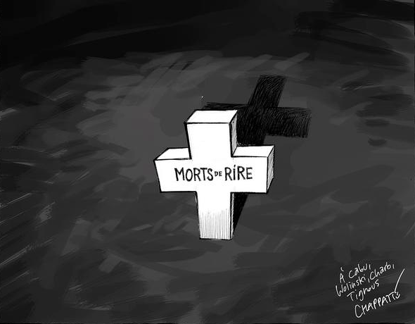 J’ai toujours admiré ces hommes-là, capables de rire de tout, qui trouvent toujours le bon angle pour arriver à nous faire rire même du pire. Comme beaucoup, je me suis parfois demandé s’ils allaient trop loin, je n’ai pas ri à toutes leurs blagues, mais au fond, l’humour peut-il aller trop loin ? J’aurais aimé être comme eux, avoir leur esprit, leur talent, leur impertinence. Comme beaucoup, je n’arrive pas à réaliser leur mort. Qui sera-là pour en rire cette fois ? Alors on relit en boucle l’information, on partage les dessins qui leur rendent hommage, on crie notre indignation, comme si à force de se le répéter ça allait devenir plus réel.