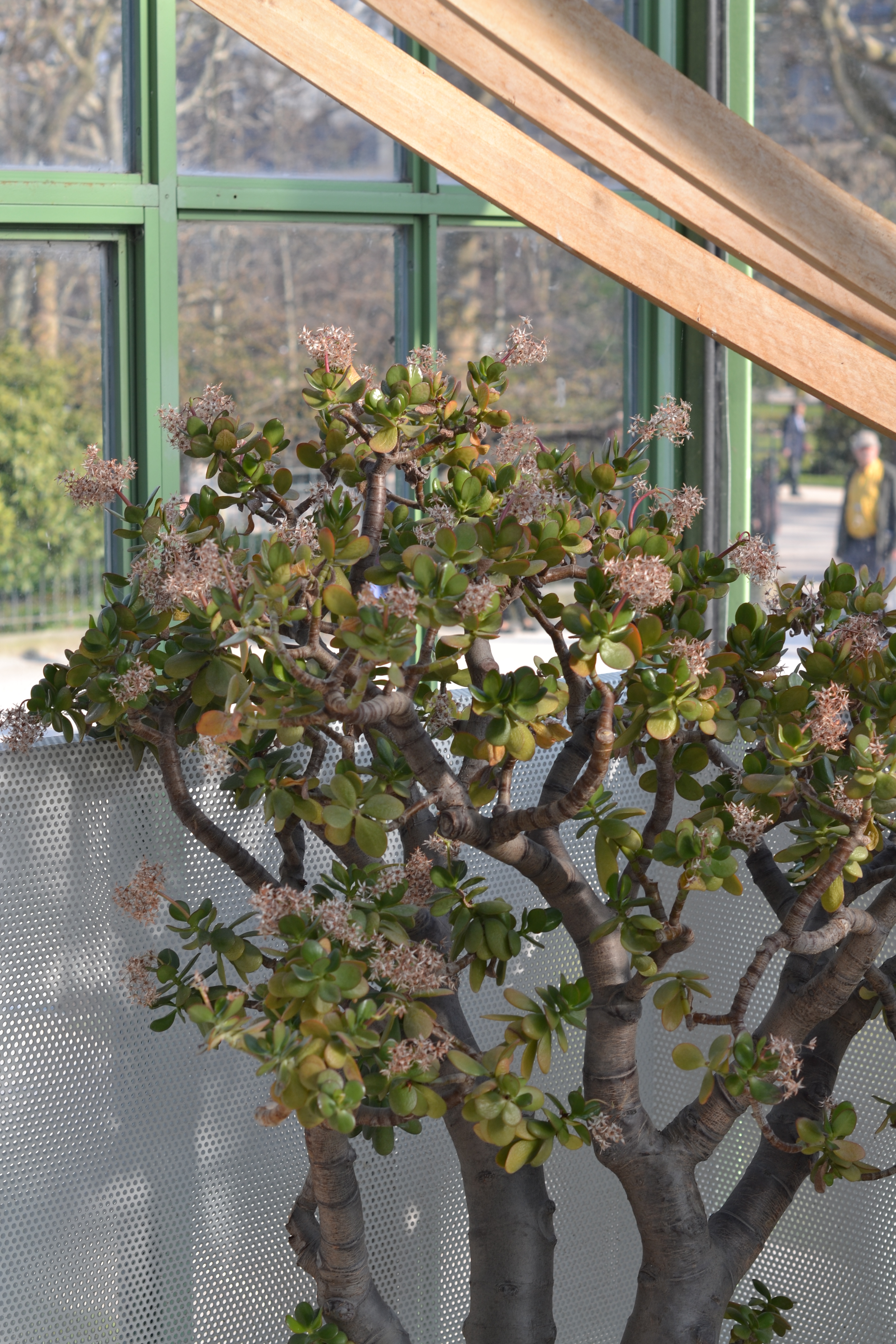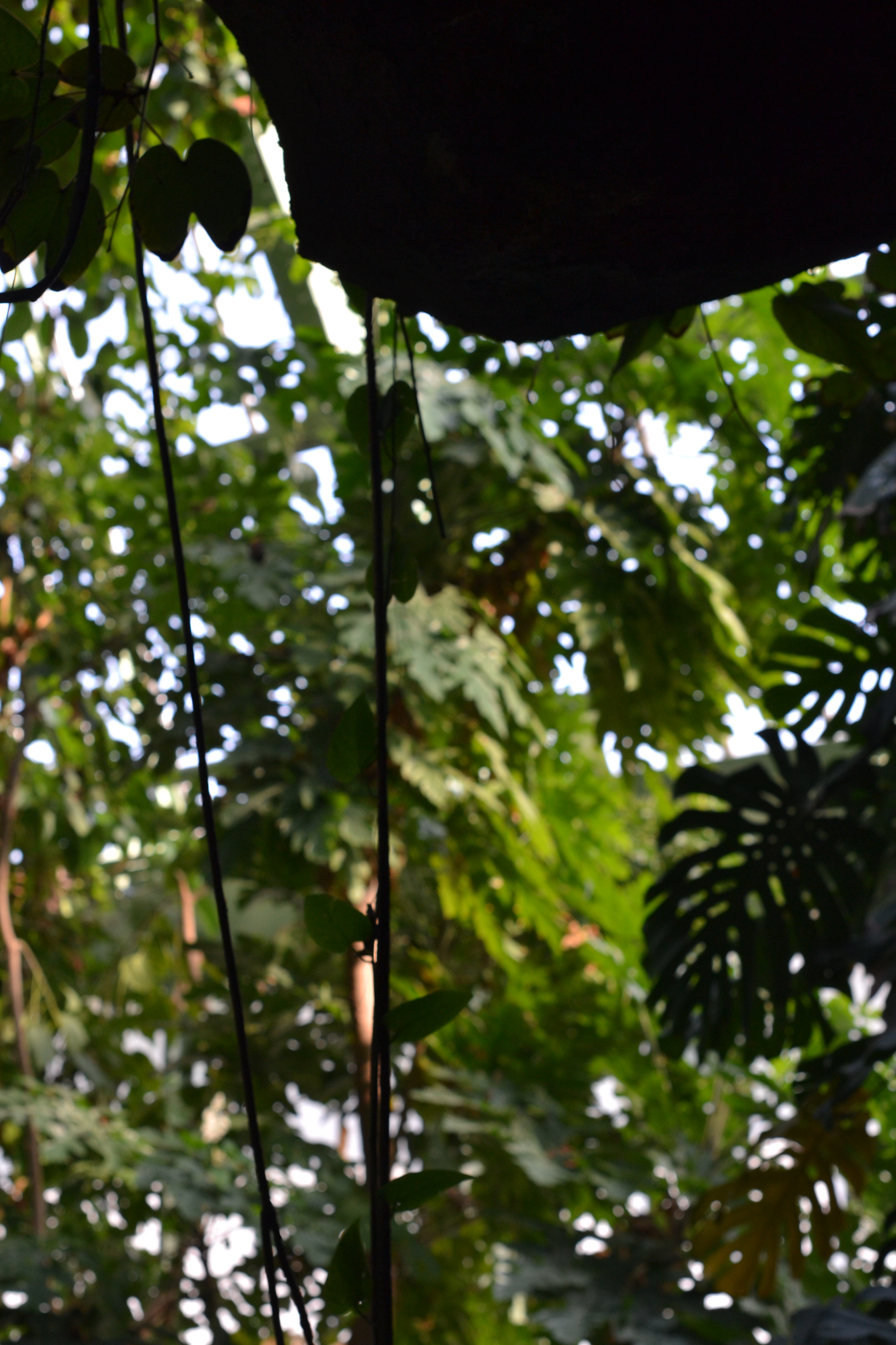 Les serres sont situées au cœur du Jardin des Plantes. Dès l’entrée, on est dépaysé avec ces arbres immenses qui poussent dans un climat chaud et humide qui dépayse le visiteur plus habitué au frimas parisien. Nous avons raté de peu l’exposition sur les orchidées : grosse déception. Déjà parce que j’adore ces fleurs, et puis parce que quelques touches colorées auraient égayé le paysage.