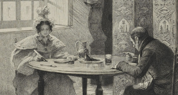 Il le trouva en robe de chambre et en bonnet de nuit, assis débonnairement avec sa mère dans la pièce à demi démeublée où d’Herville avait fait l’autopsie d’Emma et où maintenant, seul signe d’animation, le balancier de la grande horloge paysanne brune à longue caisse continuait de battre avec l’obstination domestique d’un bœuf qui rumine ou d’un feu qui brasille.