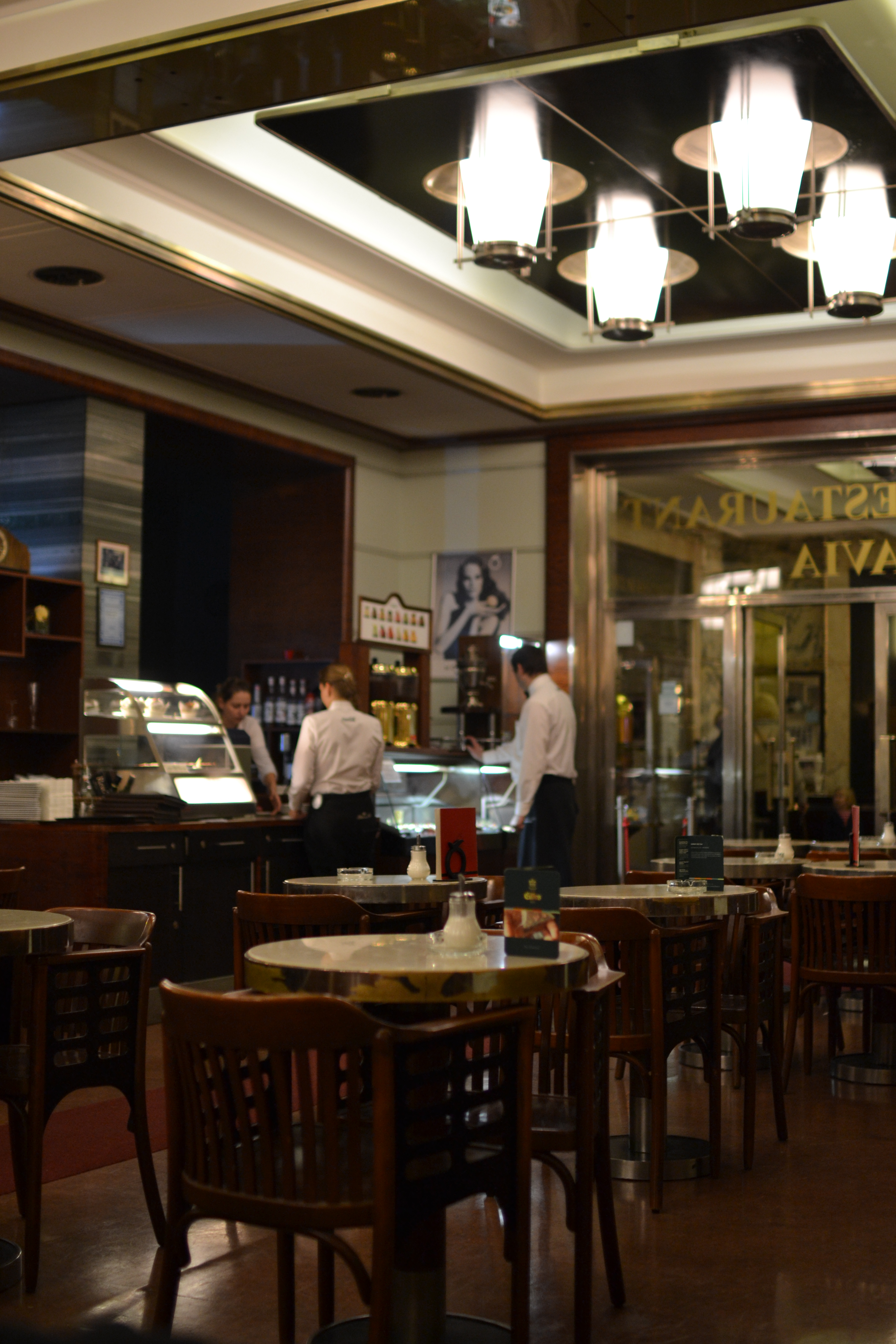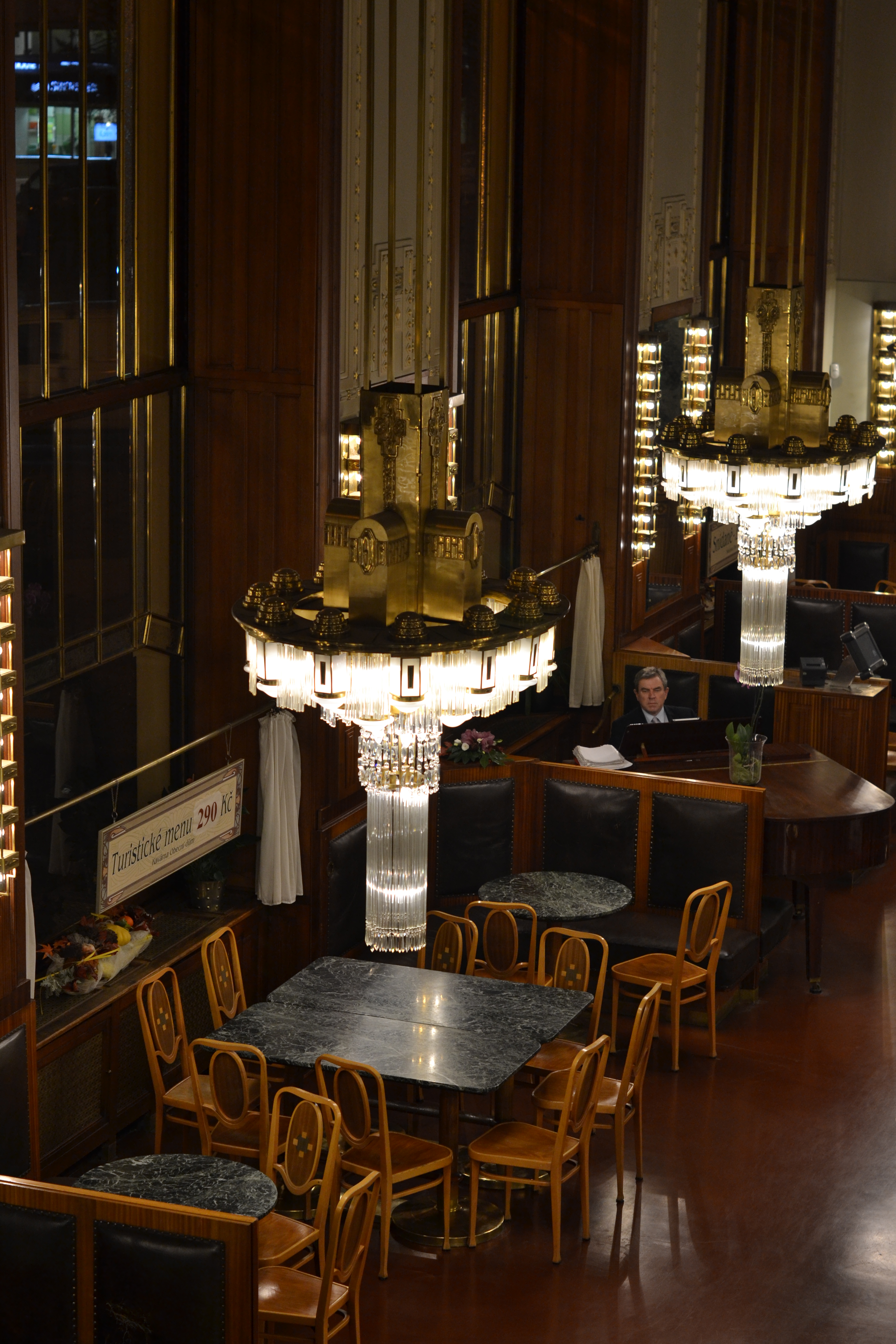 Après ça, je me suis mise en quête de souvenirs pour ma famille. La tâche s’est avérée plus ardue que prévu. Je voulais éviter la camelote pour touristes et ramener des choses assez typiques. Malheureusement, tout ce qui me plaisait était soit trop cher, soit trop fragile ou encombrant (voire les 3 à la fois). J’ai par exemple vu les verres de mes rêves que j’aurais bien ramenés pour mes parents mais où est-ce que j’aurais mis 6 verres en cristal ? Quant aux œufs peints pour décorer le sapin de Noël, ils n’auraient jamais survécu en soute. Un vrai casse-tête donc qui m’a finalement occupée une bonne partie de la journée. D’ailleurs, j’ai fini par acheter quand même quelques bricoles bon marché parce que côté budget/temps pour chercher, ça devenait difficile. Si je m’étais écoutée, j’aurais ramené tellement plus de choses ! A midi, j’ai décidé de manger dans un bon restaurant repéré la veille pour un éventuel goûter : le Café de Paris. Très chic, déco Art Nouveau. J’ai pris un goulash revisité de manière très élégante et vraiment à tomber. Pas de dessert parce que plus faim mais leurs gâteaux ont l’air. Côté prix, c’est cher pour Prague mais raisonnable si on se base sur des prix parisiens.