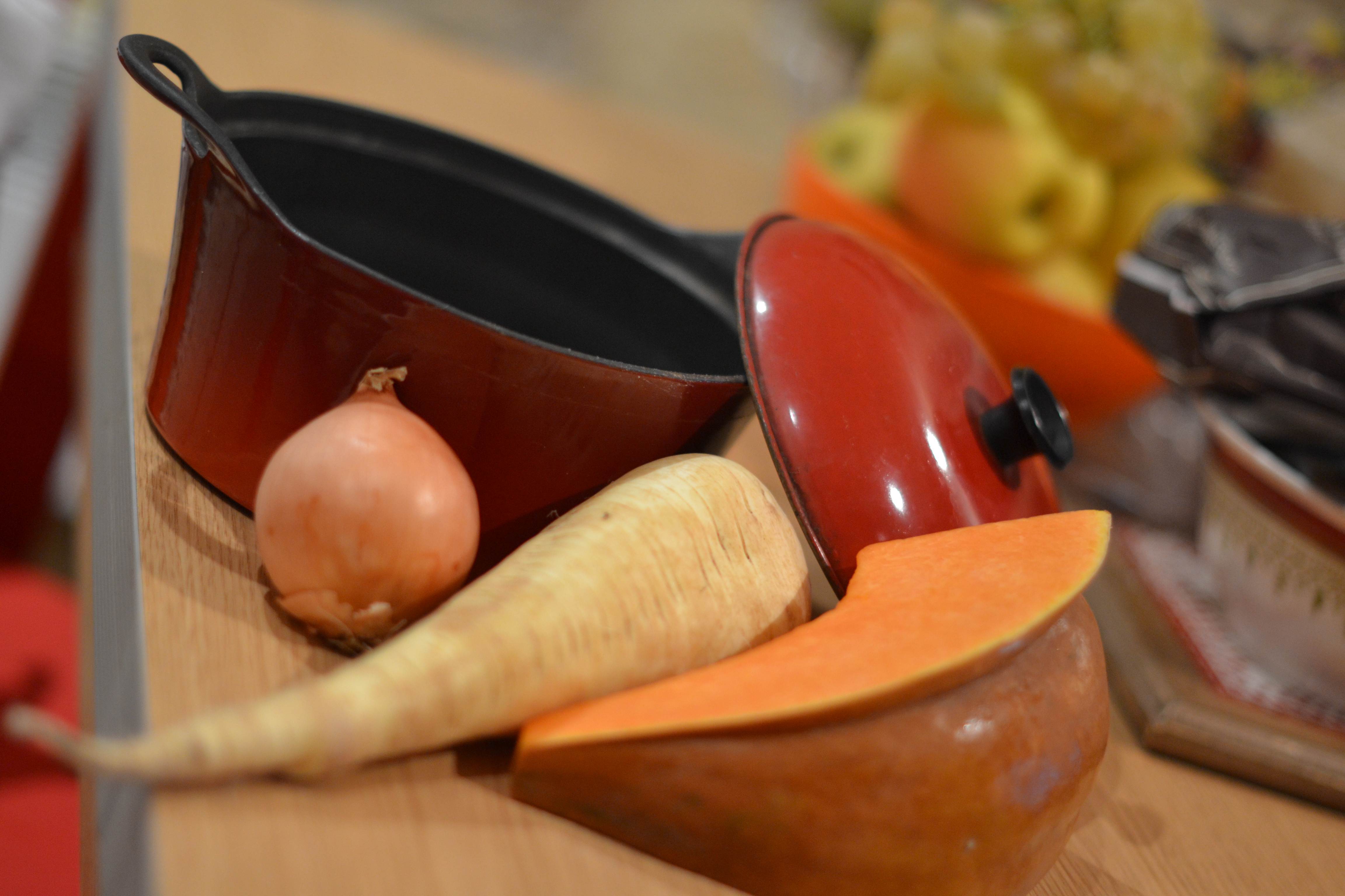 Coupez la courge en deux. Enlevez les graines – vous pouvez les garder pour en faire des graines de courge séchées – et mettez à la place une cuillerée à soupe d’eau. Mettez-la courge au four 45 à 50 min.
